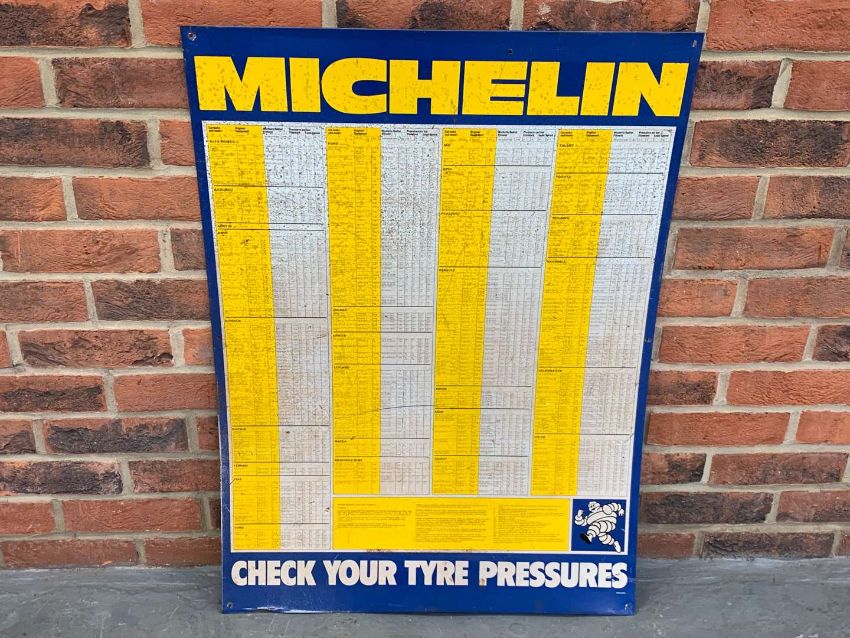 Summary: Tin Michelin Tyre Pressure Chart 63 x 86cm
