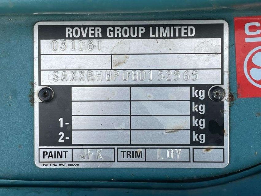 Make & Model: ROVER, 114 SLI Date of Reg: S923UEL Colour: BLUE cc: 1396 MoT: 2023-10-05 Fuel Type: Petrol Transmission: 5 Speed Manual Petrol Summary: 1,396cc. Finished in metallic Hawaiin blue with two-tone cloth seats, this Rover 114 SLi 5-door has had just one owner from new. The mileage of 13,950 is warranted, which is supported by twenty stamps of service from 1999 to 2020 at 13,795 miles. It was serviced by Sewards from new until 2011. The original bill of sale for £10,035, book pack, a large quantity of service invoices from 1999 through to 2018, sales brochures and some MoTs dating from 1999 complete the file.