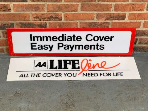 Summary: Two Perspex AA Insurance Signs 93 x 23cm