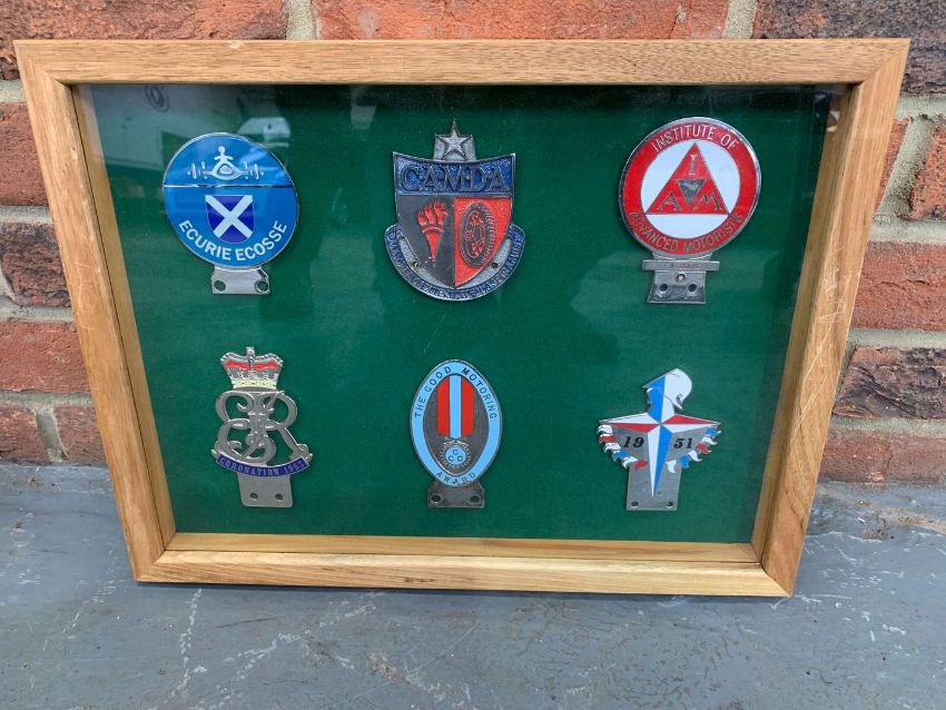 Oak Cased Set of Six Motoring Badges 43 x 33cm