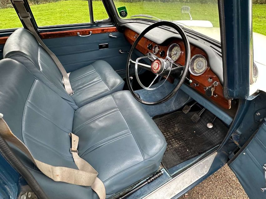 Registered in March 1971, making it one of the final examples to be built, this very presentable 1622cc Wolseley 16/60 is now showing 28,150 miles on its odometer and, even though it is now MoT-exempt, it has a valid one through to November 2024. Paperwork accompanying the Wolseley includes the V5C, owner's handbook, some old tax discs, past MoT certificates back to 1993, period brochure and invoices back to the 1990s. There are also undated photographs showing the Wolseley undergoing a restoration (and a change from dark blue to two-tone blue and white (which will need amending with the DVLA) and some show plaques.