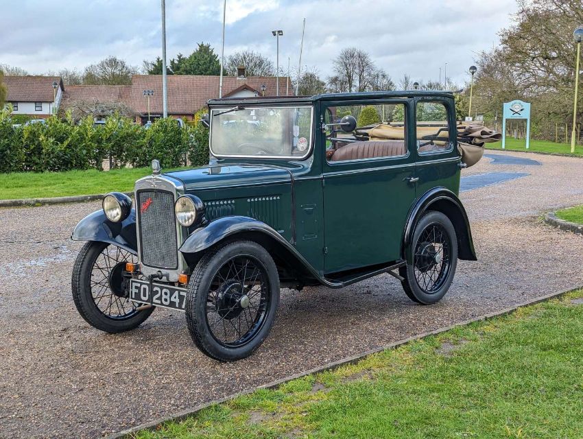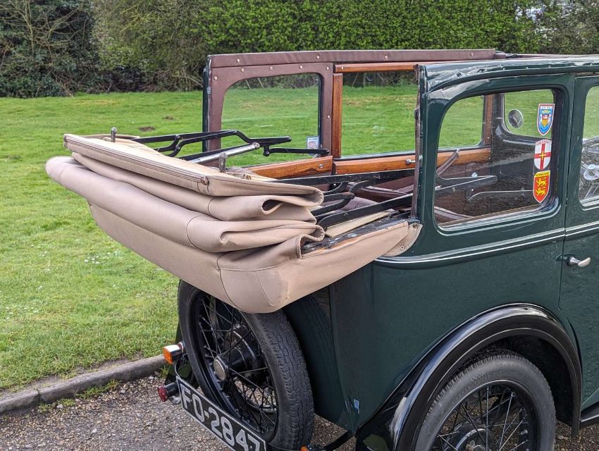 This 1932 Austin Seven Tickford Cabriolet has been in the same recorded ownership since 2019. The previous owner, an Austin Seven enthusiast, kept the car for thirty-one years and attended rallies in both the UK and Europe. A very rare model, the Tickford stands out with its wind down Mohair roof. Recent work has included a new petrol tank, carburettor rebuild, new starter ring gear, front brake shoes and battery. Fitted with a Phoenix crank and high compression head. Comes with buff log book, MoT's 1988 - 2012, tax discs, hand written service notes, handbook and V5. 3,123 recorded miles