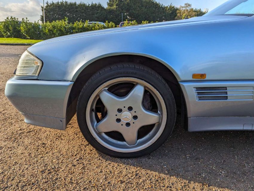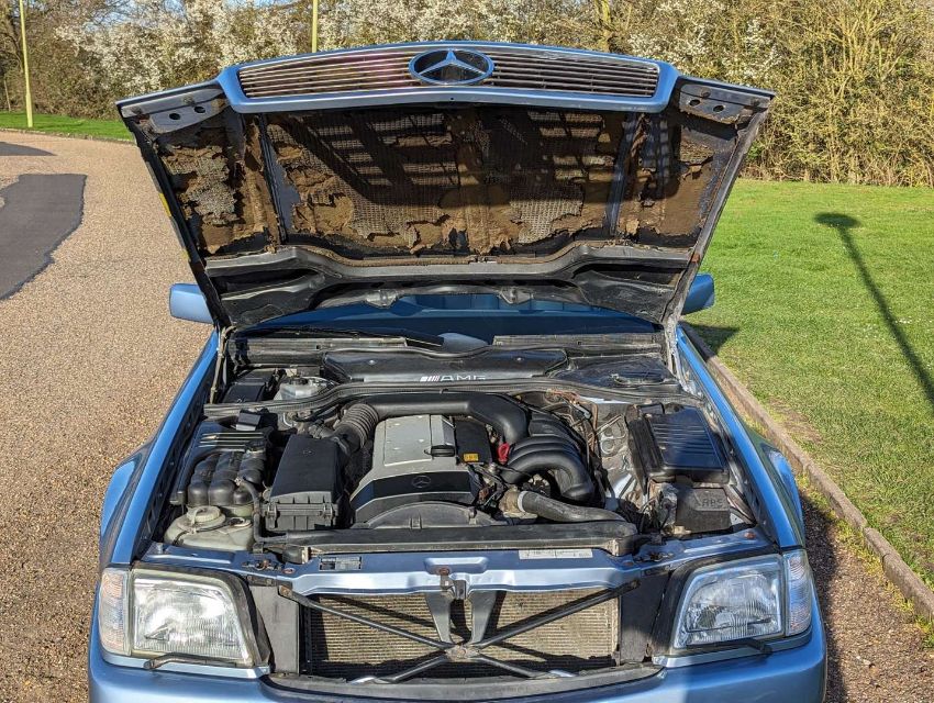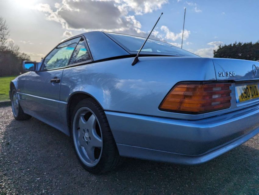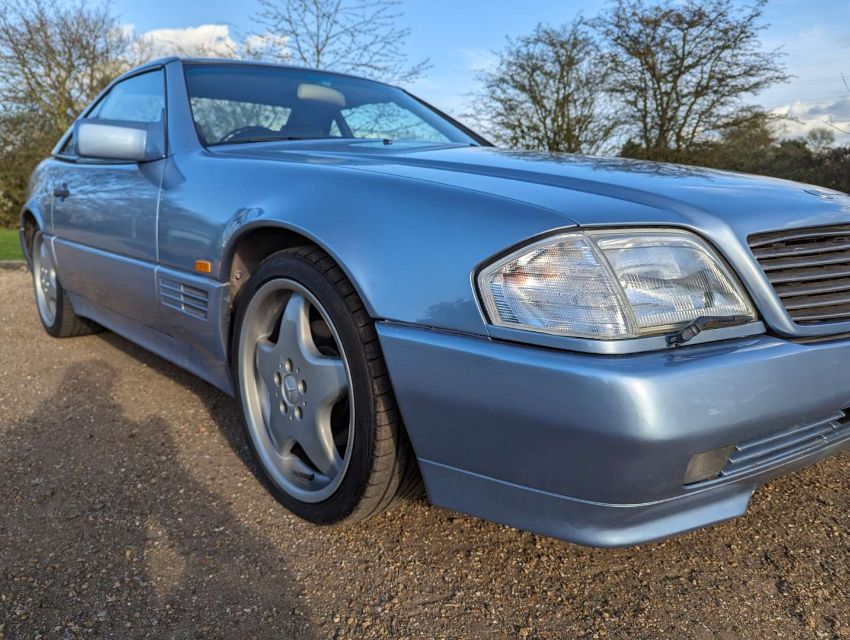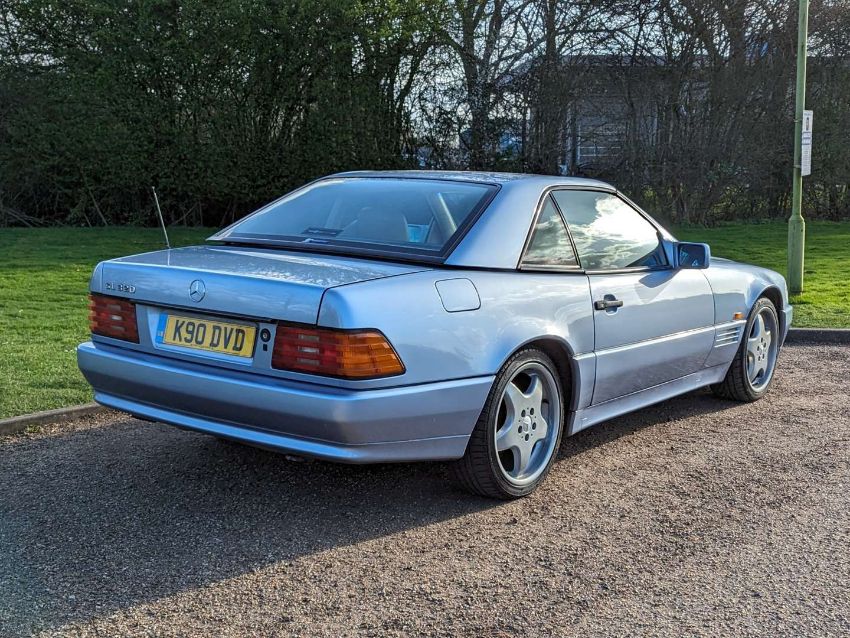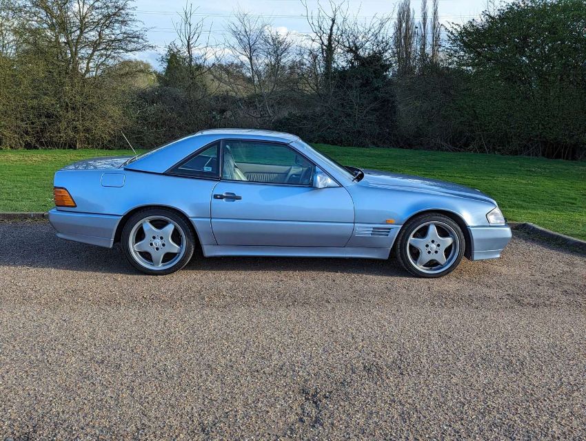 Registered in February 1994, this Diamond Blue Metallic with Cream leather 3199cc Mercedes-Benz R129 SL320 Auto is MoT'd through to July 2024 and has 105,499 miles showing on its odometer. It comes with its hard top, as well as its tool kit and wheelnut kit. There no V5C with the SL320, so one will need to be applied for, but there are invoices and MoT certificates, and the original book pack with owner's handbook, UK dealer map, European directory and service book, the latter with 18 stamps up to 104,107 miles in May 2018. There's also a spare set of keys as well.