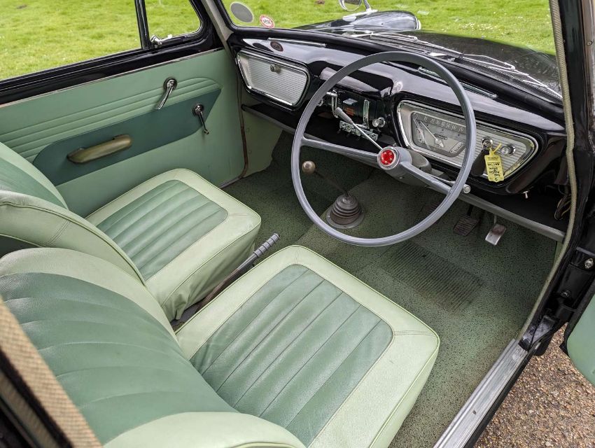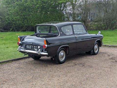 This Ford Anglia 105E Deluxe was first registered in Northern Ireland in June 1961 by the vendor's uncle, and has been in the same family ever since, with just two registered keepers overall. It is described as all original, inside and out, with 22,881 miles showing on its odometer. Although SORN since 2020, it has recently been serviced and is reported to be running well, albeit with occasional starting issues. The car was UK-registered in November 2008 and its last MoT expired in July 2018 after being tested the previous year at an indicated 22,121 miles. However, as an historic vehicle, the Anglia is now MoT-exempt. The history file includes the V5C, original buff logbook, old tax discs and the owner's handbook (as well as one for a Ford Zephyr Six) and Haynes and Pearson's workshop manuals.