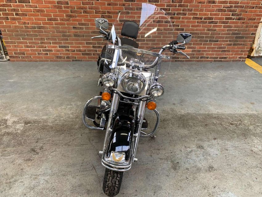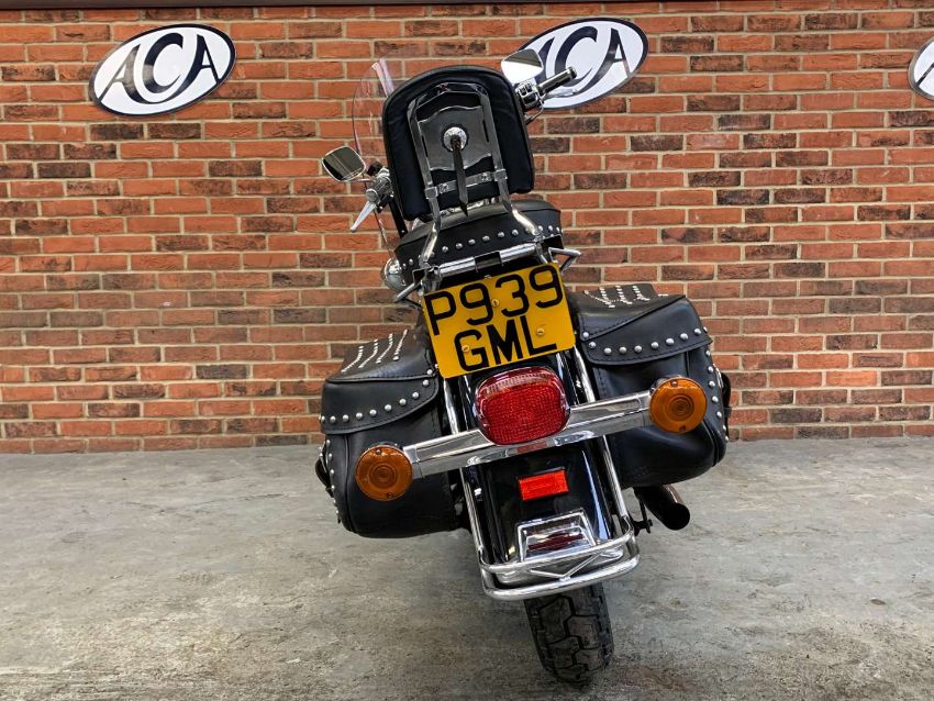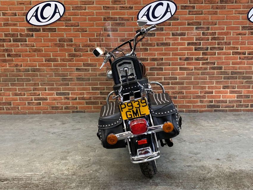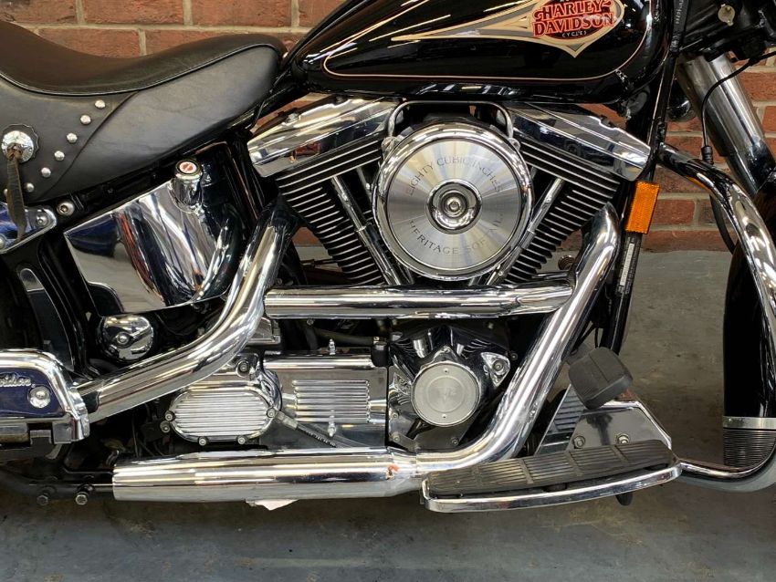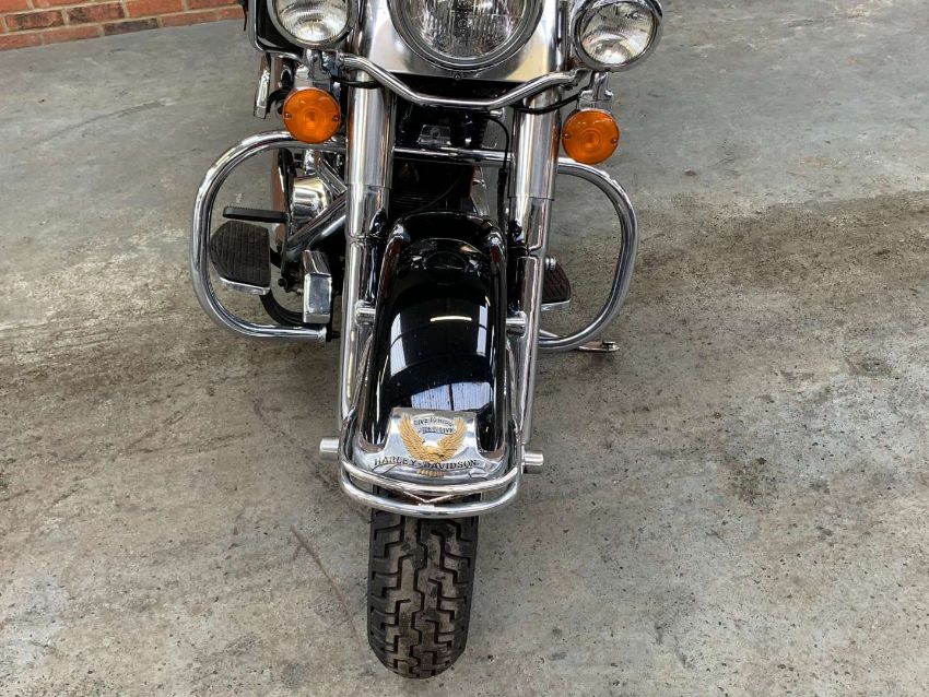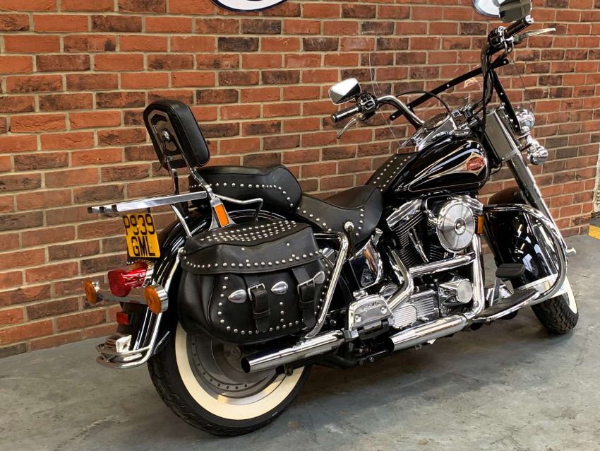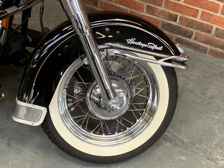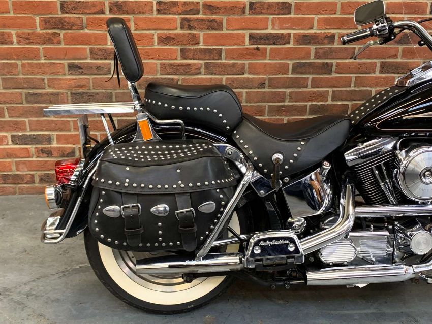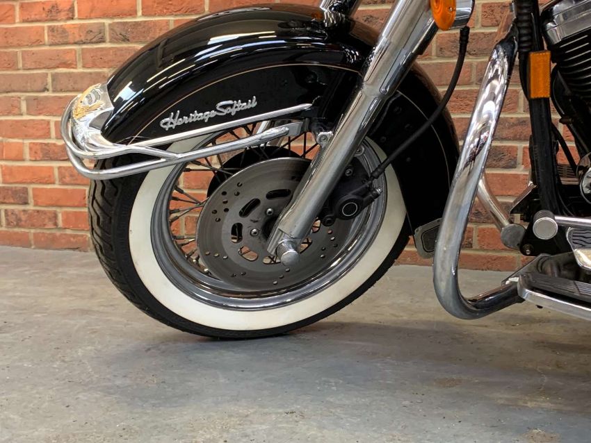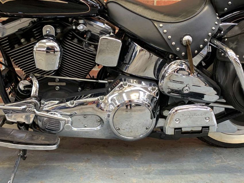 Our vendor purchased this Harley Davidson new in 1996. The Owners Manual/Service book contains twenty seven Harley Davidson service entries from from 538 miles in 1996 to 27,547 miles in 2022. A further Harley Davidson service invoice from 2023 at 27,679 is included. Fitted extras include Stage One Dynajet, Crash Bars front and rear, Sissy bar and rack, Chrome front forks, fitted alarm and Optimate connector. Always kept in a dry garage when not being used, the bike presents very well indeed. Comes with V5C, assorted invoices and MoT's. 27,712 warranted miles at the time of cataloguing