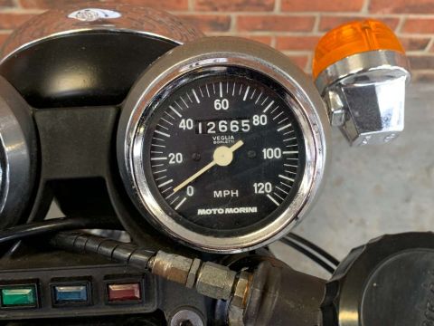 344cc. This Moto Morini 350 has been owned by the vendor since 2016 although never used by him at all. It is described as having good compression and everything appears to be working as it should but full recommissioning will be required to make is useable. It benefits from a recent front brake caliper rebuild. V5 and MoT history covering 2009 and 2010 come with this motorcycle. The mileage is recorded at 12,665.