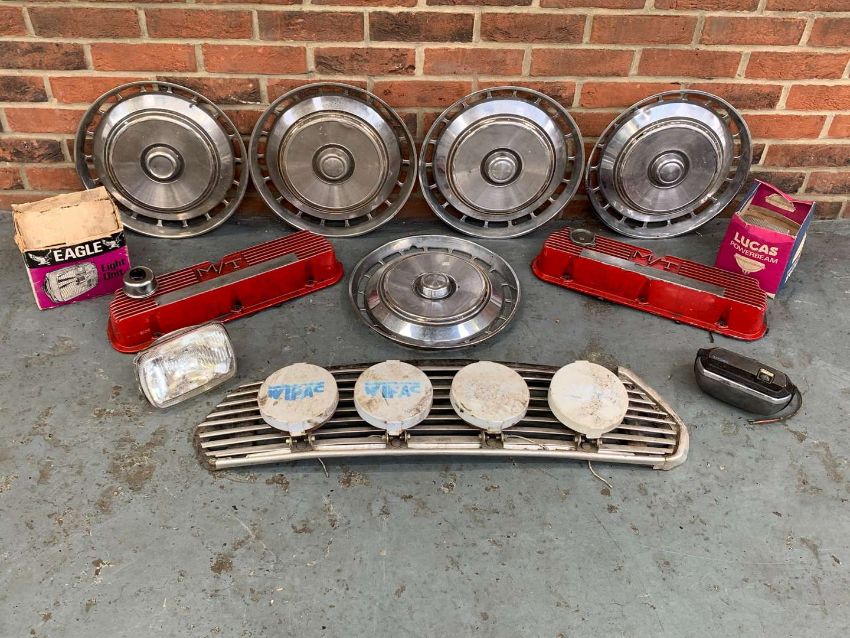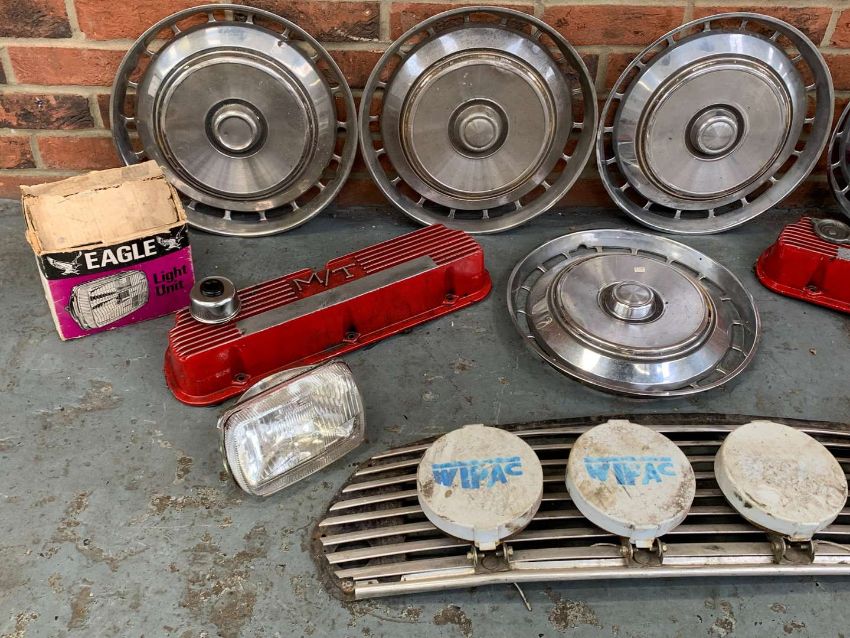 Two Rocker Covers, Lucas Spot Lights, Mini Grille Etc