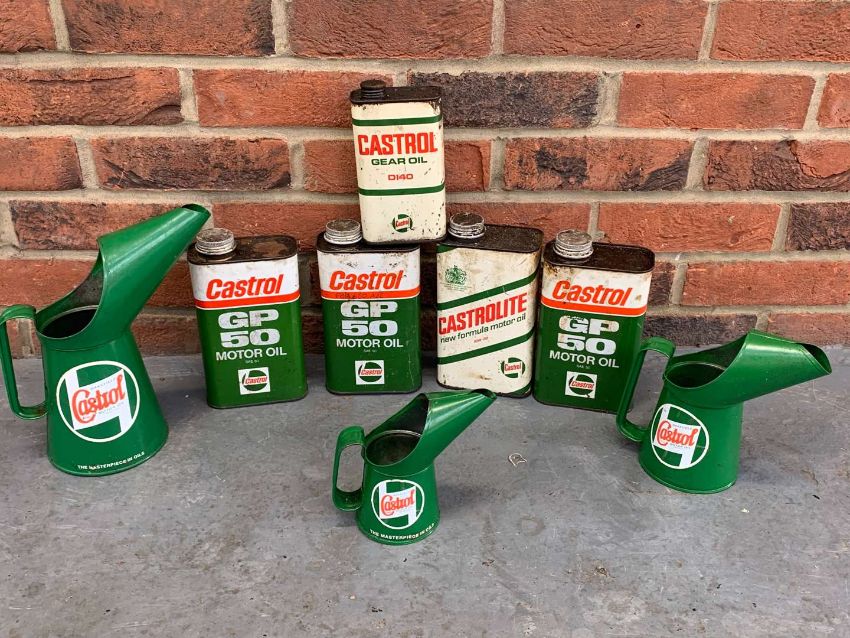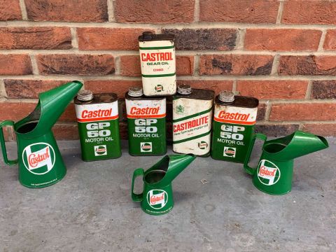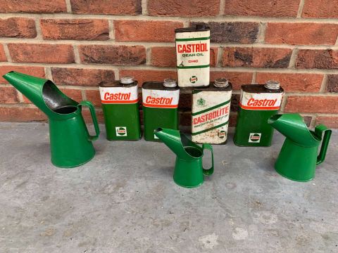 Five Castrol Oil Cans and Three oil Pourers (8)