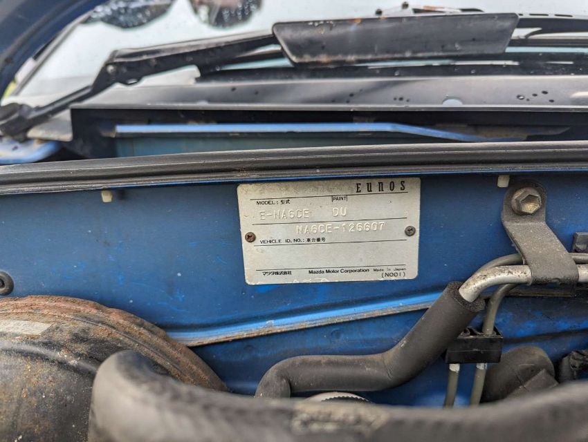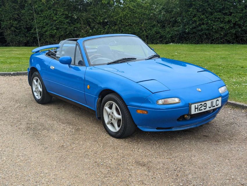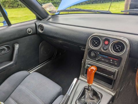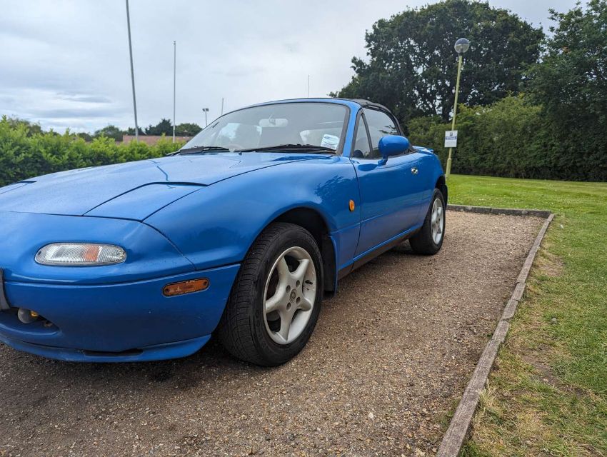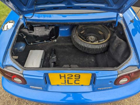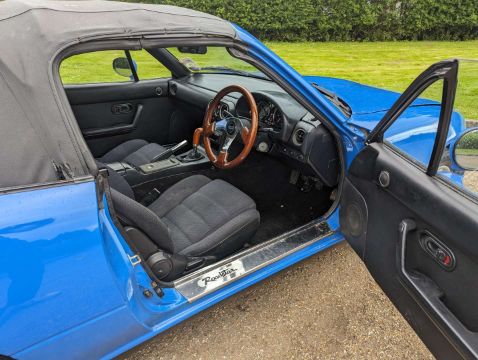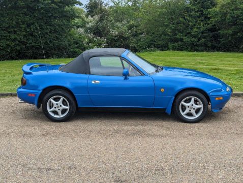This Mazda Eunos (the Japanese home market title for the MX-5) in Electric Blue has mainly been in storage by the last (garage) owner since 2009 and has covered very little mileage in his ownership. In approximately 2016/2017 it underwent some major work including tidying the bodywork, sills, arches etc. The head gasket and timing belt were also replaced. This was done for his wife but, after a two-mile test drive, she decided the car wasn't for her. So it then went back into dry storage. In 2024, the car was MoT'd and sold to the current vendor following the owner's retirement. Recent works include a new fuel pump and clutch slave cylinder.