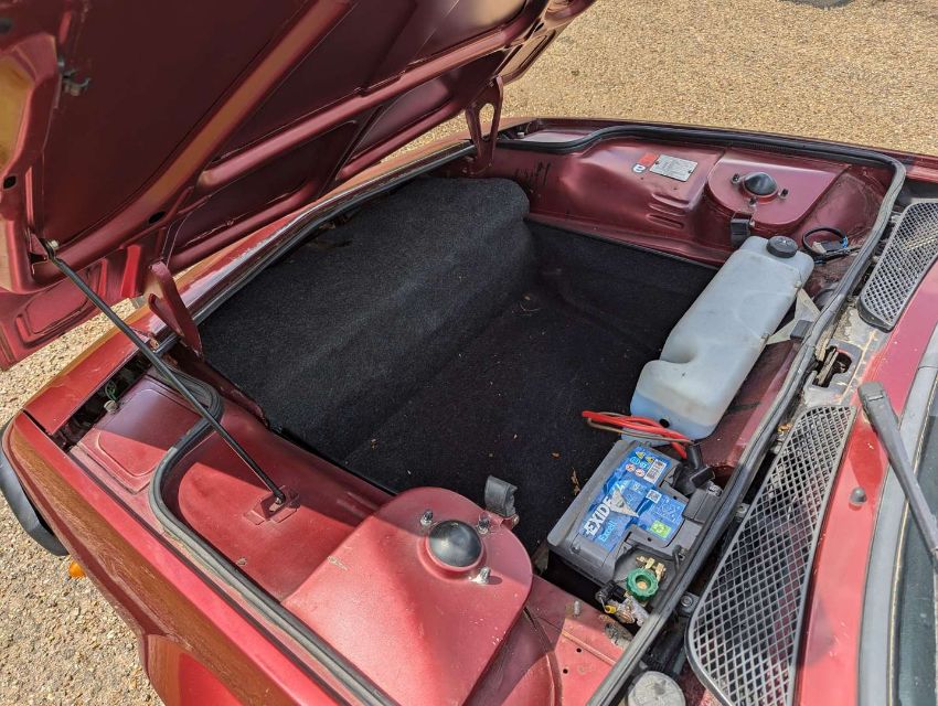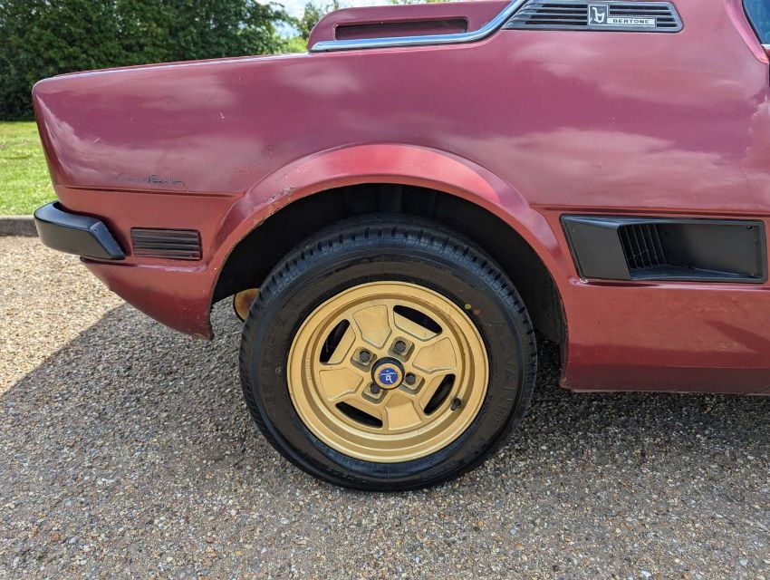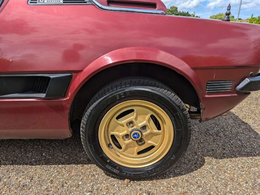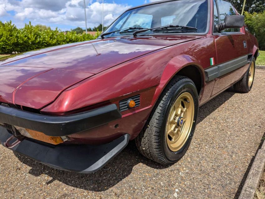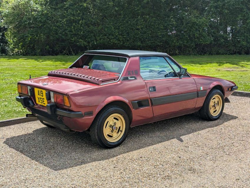 The vendor has owned this 1988 Fiat X1/9 since 2011, during which time it has appeared in Practical Classics magazine (a copy of which is included in the history file). It has been converted from original 1500 big bumpers to the more desirable 1300 short bumpers (with the replacements being original steel, not fibreglass replacements). It also has a 1300 front grille, 1300 series Special front spoiler and Iron Cross-style wheels with Yohohama tyres. The vendor describes it as a superb car to drive and running very well, although the battery is tired and may need replacement. It has been upgraded with a full stainless steel custom exhaust. The Fiat was registered in October 1988 and its odometer shows 77,573 miles, with the MoT valid until September 2024. Paperwork with the Fiat includes the V5C, copy of Practical Classics from September 2013, MoT certificates back to 1998 and paperwork/invoices back to 1999, and a rolling road read-out that shows peak power at 97.5bhp.