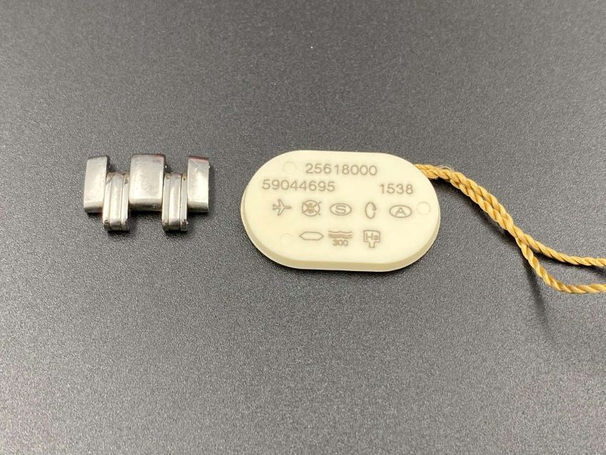 Together with signed swing tag, spare link, fitted box of issue, pictogram card, Certificate of High Precision booklet, stitched wallet, Operating Instructions book and card outer box.