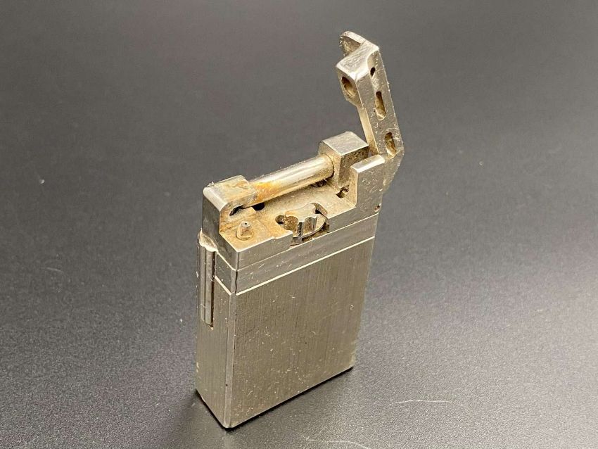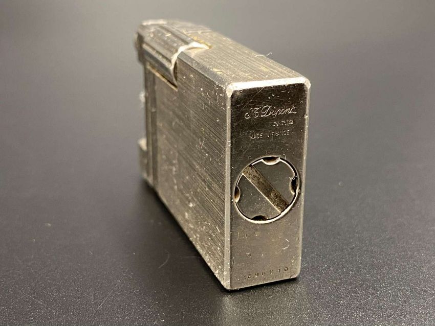 Of polished circular form (dent to rim), together with a “Dupont” electroplated gas lighter and a “Tommy” spirit lighter. (3)